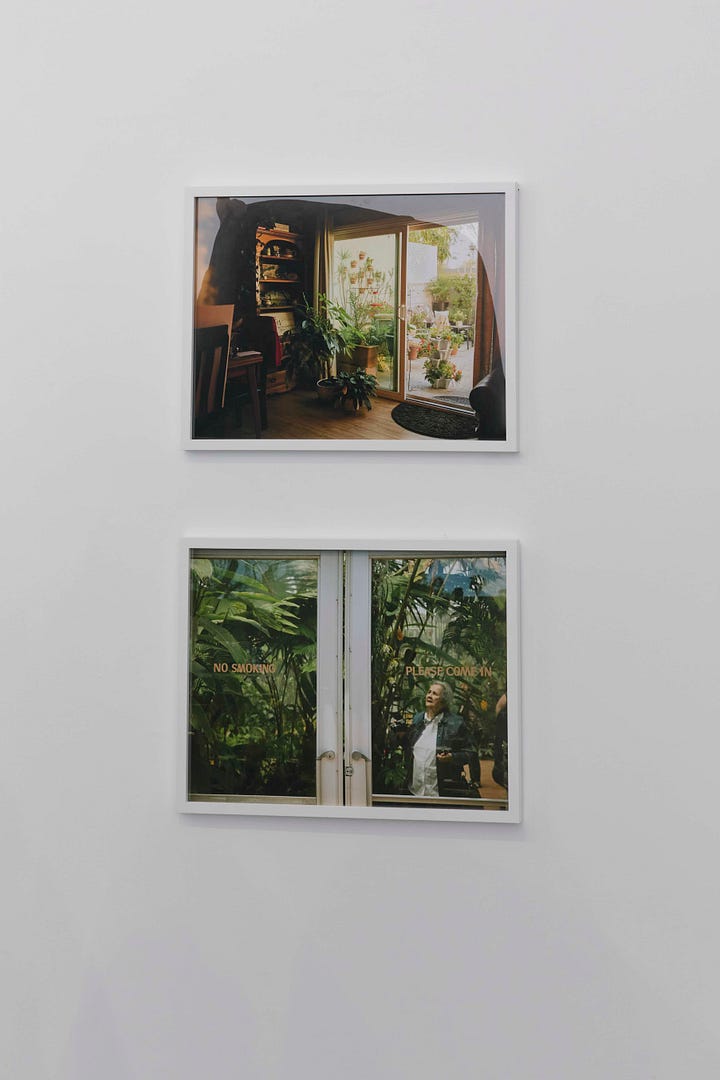 Perhaps the most time-literal of all the photoworks belong to Nicolas Caesar Colón. His work with shutter speed in these three photographs unveils the reality of the expansion of time that photography offers, giving the viewer a clearer understanding of how photography creates its superhuman perspective. Chloe Daniels’, “Discarded Laundry Machines,” shows deterioration over time in the film's altered coloration due to its expired chemistry alongside the deteriorated domestic appliances. Stephen Childs’ works touch on two quiet moments of a family’s life and performance, as the artist himself portrays “Bud” and his real life children perform alongside him in the photographs.